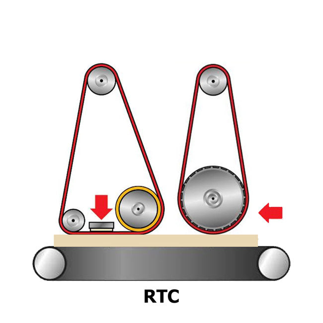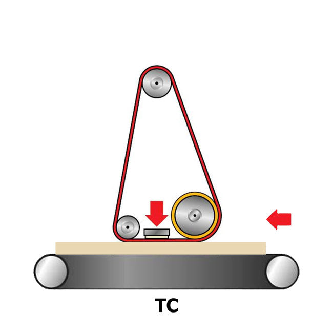 - Grooved steel contact roller (Ø 120 mm) with pneumatic pressure adjustment.