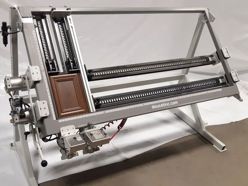The Doucet SDM-MITER Door Master is a high-precision, pneumatically powered door clamp designed for assembling mitered (45°) and cope & stick (90°) cabinet doors with exceptional speed, accuracy, and repeatability. Engineered for custom woodworking shops and high-production facilities, this clamp system ensures perfectly squared and tight joints, reducing rework and improving efficiency.