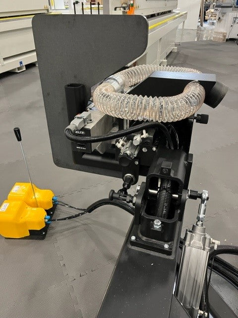 Trimming unit with pneumatic opening of the trim motors to facilitate the introduction of the panel. Motor: