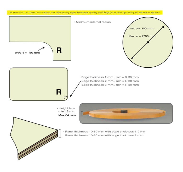 *All Min and Max radius are affected by the tape thickness, quality and adhesive used.
